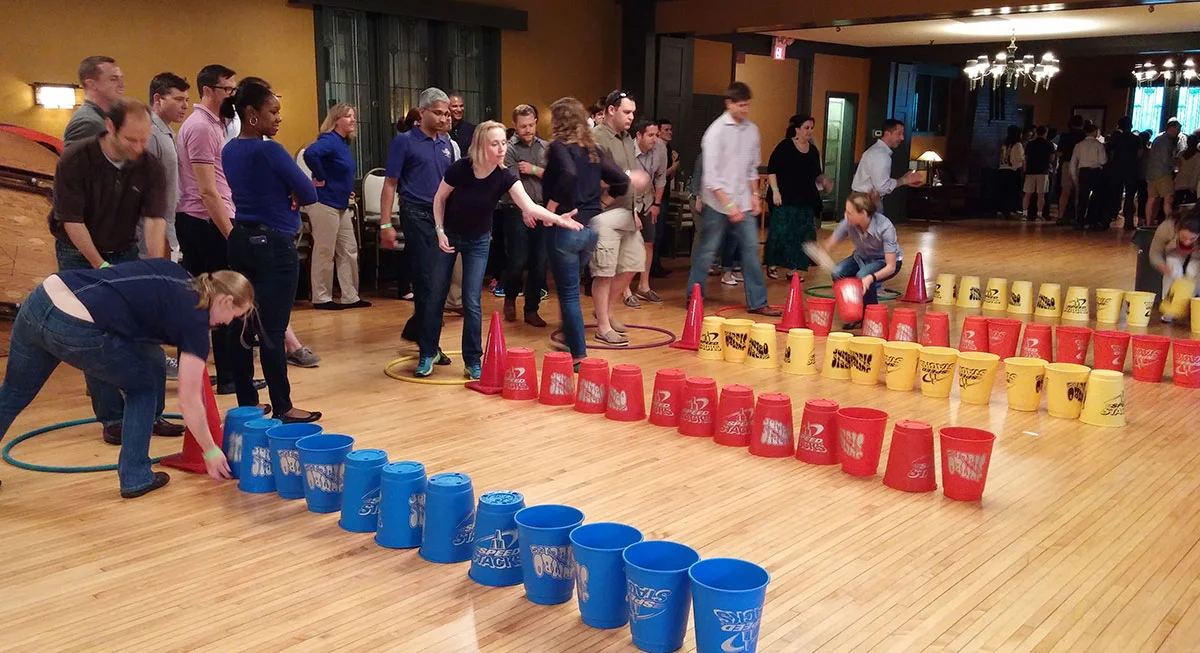 The Interactive Team Challenge is a fun twist to WCF’s award-winning Team Challenge enabling clients to eat, drink and network throughout the event with a reception style team building event. Instead of a structured 20-30 minute rotational competition at the beginning of your event followed by a reception, dinner or meeting, the Interactive Team Challenge allows participants to move from station to station at their own pace throughout the event. As a result, your team is able to mingle with co-workers in a relaxed and open reception style setting with food and drink while also actively engaging in approximately 30 minutes of team building activities throughout the event at times that work best for their team. Teams earn points based on their performance at each station with the two teams earning the highest number of point competing in a final culminating event to crown the overall champion. The perfect event for companies wanting a less structured team building event with ample time for building relationships and strengthening team camaraderie while also interjecting some fun and competition into your event.